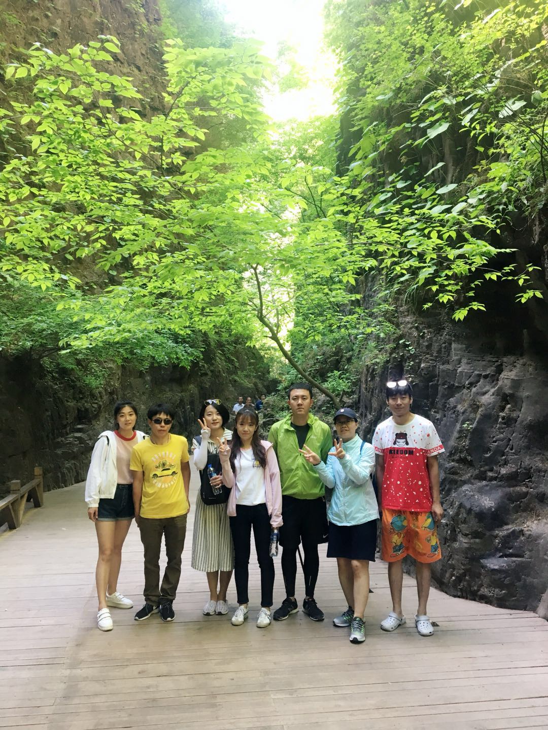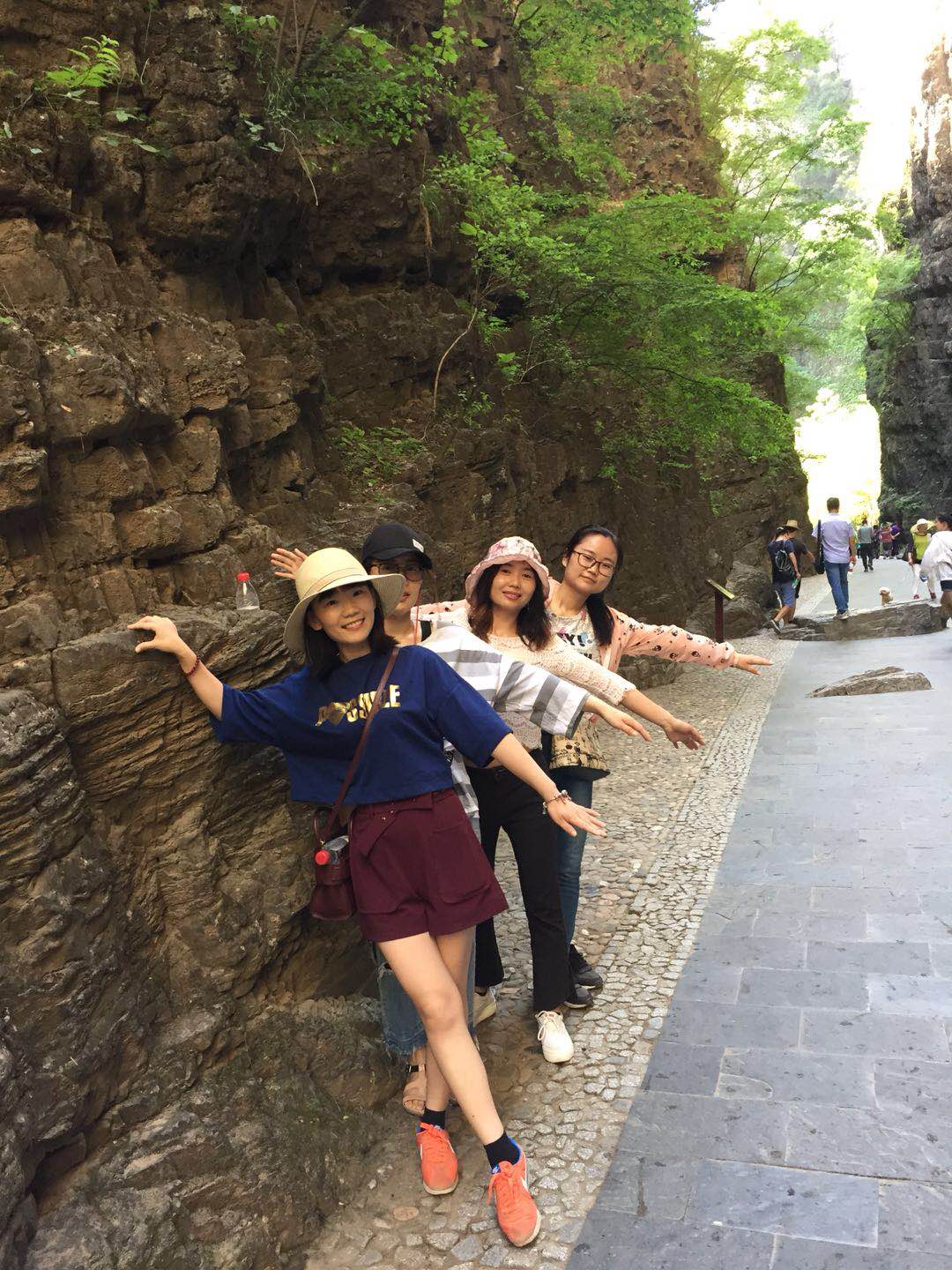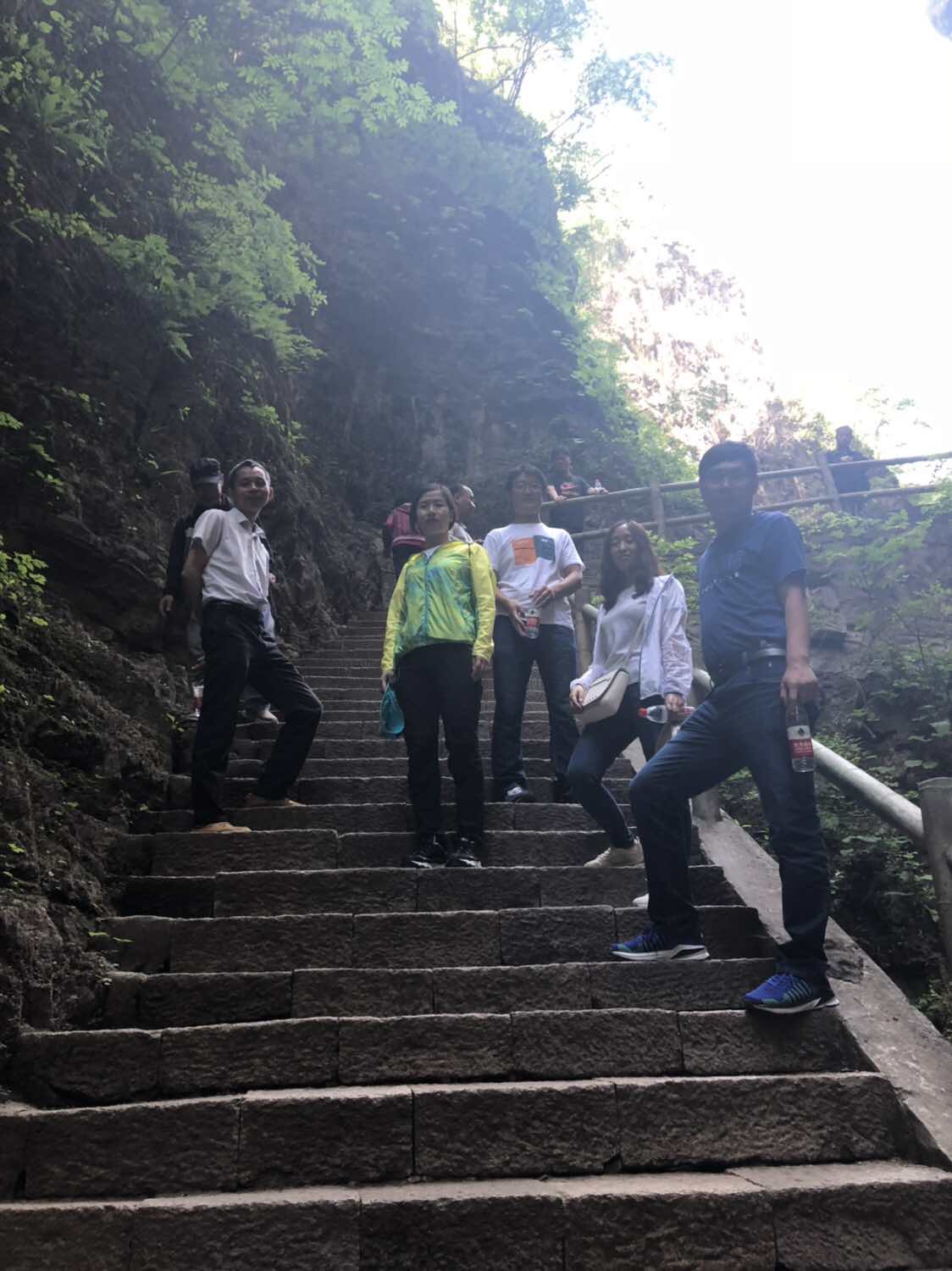 團(tuán)建活動(dòng)part 4:游覽“天下第一峽” 團(tuán)建第二天我們要去到的是被譽(yù)為“天下第一峽”的百里峽景區(qū),聽(tīng)聞百里峽天梯有三千余階,可是嚇?biāo)馈皩殞殏儭蹦?,幸好?jīng)過(guò)一夜的休息,大家精力已恢復(fù)大半。 走在狹窄的峽谷中,駐足而望,兩側(cè)聳然屹立的翠色絕壁,頭頂上若隱若現(xiàn)的一線天光,遠(yuǎn)處山巔的藍(lán)天白云,腳下忽左忽右的溪流……若不是那彩色纜車(chē)過(guò)于美好,“小芯”肯定是要徒步登上山頂?shù)?!沒(méi)錯(cuò),“小芯”真的是被纜車(chē)“色誘”過(guò)去的!??!