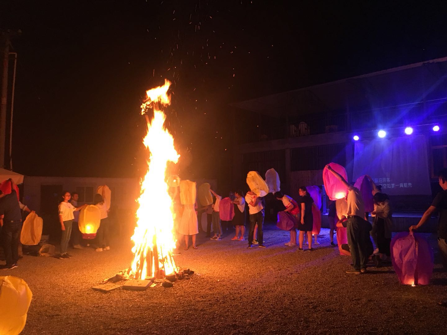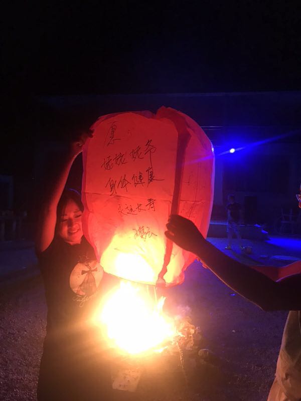 走過(guò)驚險(xiǎn)刺激的玻璃棧道,回去吃個(gè)晚飯壓壓驚。 團(tuán)建活動(dòng)part 3:篝火晚會(huì) 篝火晚會(huì)可是本次團(tuán)建中“小芯”最期待的環(huán)節(jié)呢!大家圍坐在農(nóng)家小院,點(diǎn)燃篝火,伴著美妙的音樂(lè),放飛寫(xiě)滿自己心愿的孔明燈。